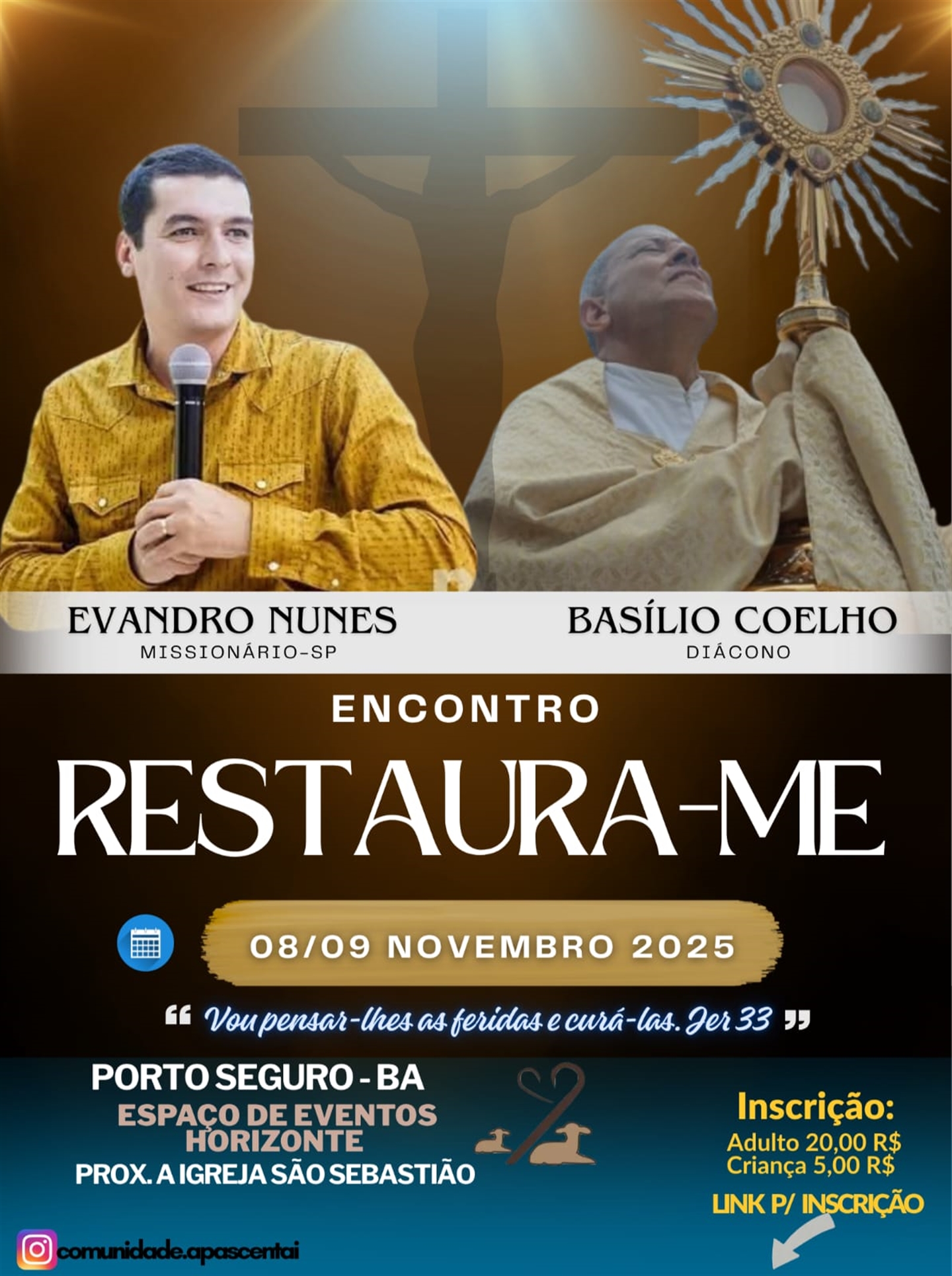 renovação e libertação espiritual no ENCONTRO RESTAURA-ME, que acontecerá nos